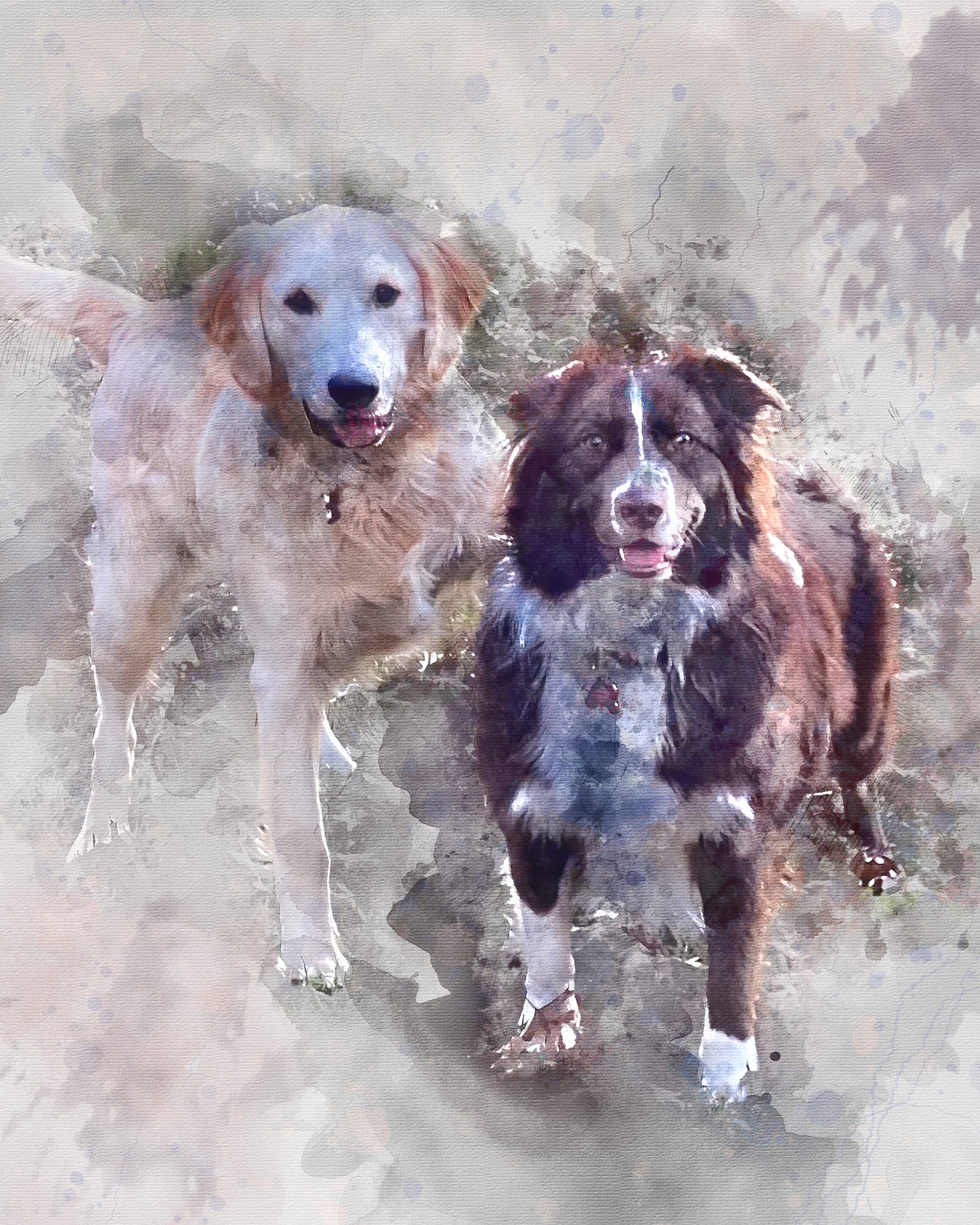 Visit my Etsy shop at https://www.etsy.com/shop/CanineCreationsbyRon Digital watercolor art of your favorite canine (we do a few cats, too!)
